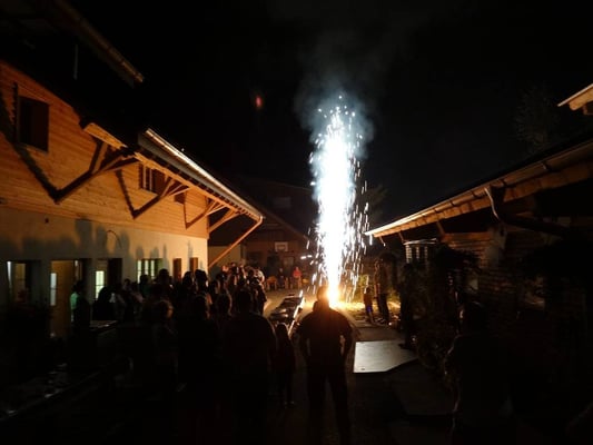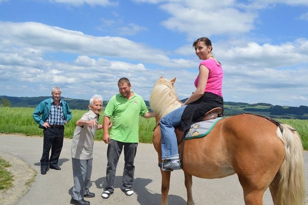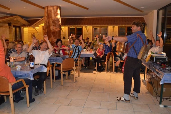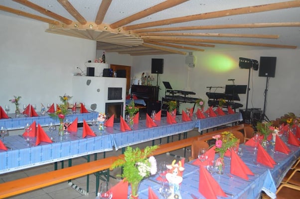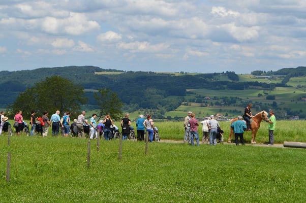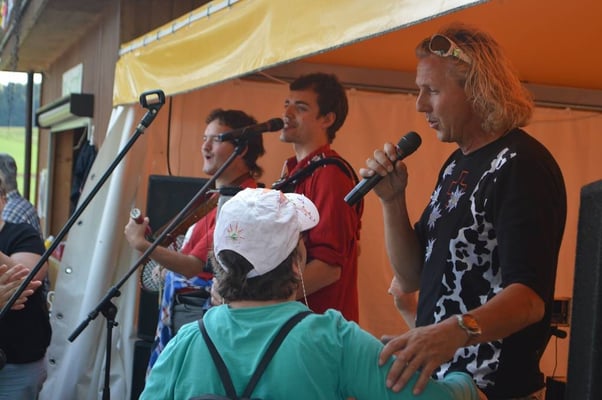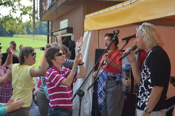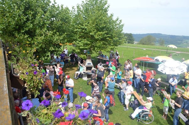 Viele Gäste genießen unsere wunderschöne Naturlandschaft und freuen sich ab den vielen munteren Tieren. Die Musikgruppe Chue Lee zaubert eine Festlaune über den Hof, so das alles was auf dem Hof zwei Beine hat, tanzt und schaukelt vor Freude.