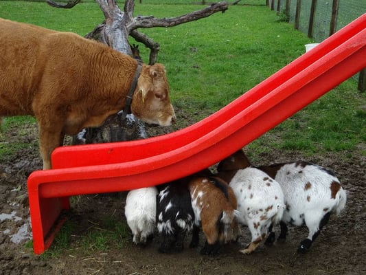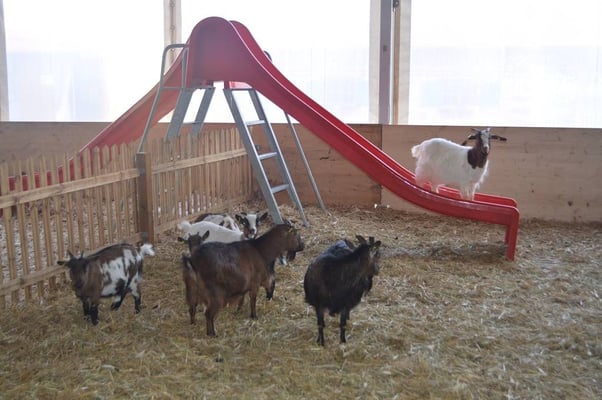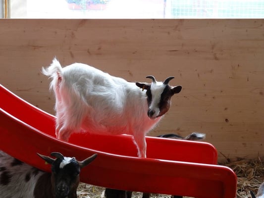 Auch bei den Zwergziegen, Katzen und Appenzellerhündin Lilly ist einiges los, wenn der Nachwuchs um die Nase tanzt.