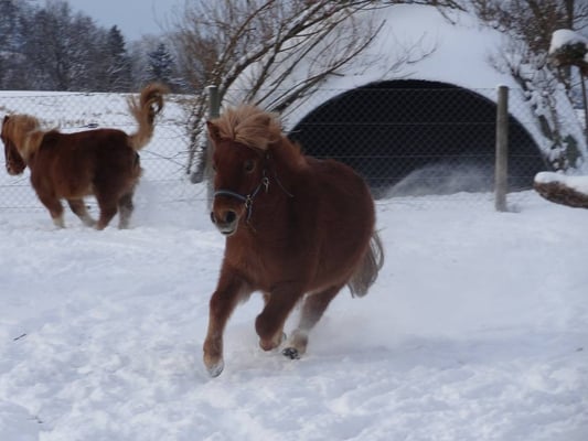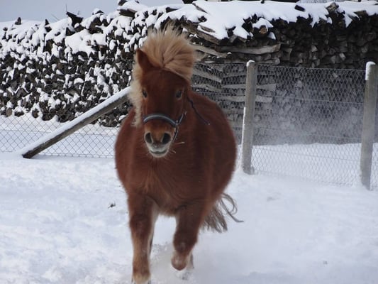 Haflingerfohlen Nanuk, Minishetty Samira, die Alpakas Winnie und Juanita machen viele Freude.