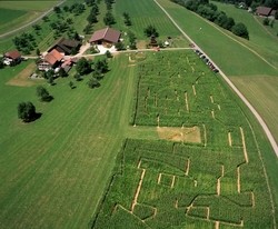 Der Maisdschungel, von aussen ein ganz normales Maisfeld, hat schon sehr viele Besucher zum Staunen gebracht, sei’s mit verzwickten Sackgassen, aufmunternden Sprüchen, witzige Fragen über die Landwirtschaft, oder andere Auflockerungen, um die Seele baumeln zu lassen.