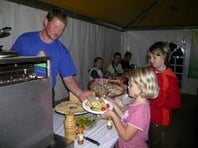 In der freien Natur wird Raclette gegessen und zum Verdauen mit Sturmlaternen durch den Maisdschungel gewandert. Ein bisschen Mut braucht es schon in der Dunkelheit bei flackerndem Lichtschein in den Maisdschungel einzutauchen, denn in der Nacht hört man viel mehr rascheln, zirpen und schreien. Auch wenn es bloss die Hofkatze ist, die einem verfolgt.