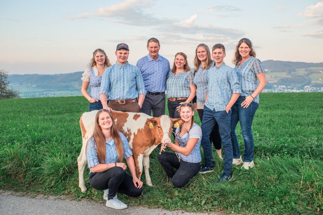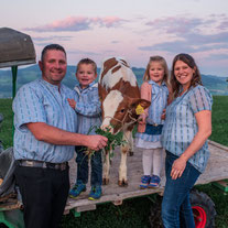 ...ist Bäuerin mit Fachausweis und bewirtschaftet zusammen mit ihrem Mann einen Landwirtschaftsbetrieb im Steihuserberg. Ihre drei Kinder Lina 5J., Andrin 4J. und Baby Melissa lieben, wie ihre Mama, alle Bauernhoftiere.